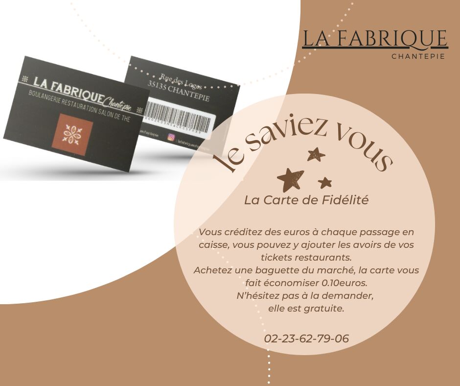 Pensez à demander votre carte de fildelité, elle est gratuite, vous cumulez des euros à chaque passage en caisse que vous dépensez quand vous le souhaitez.